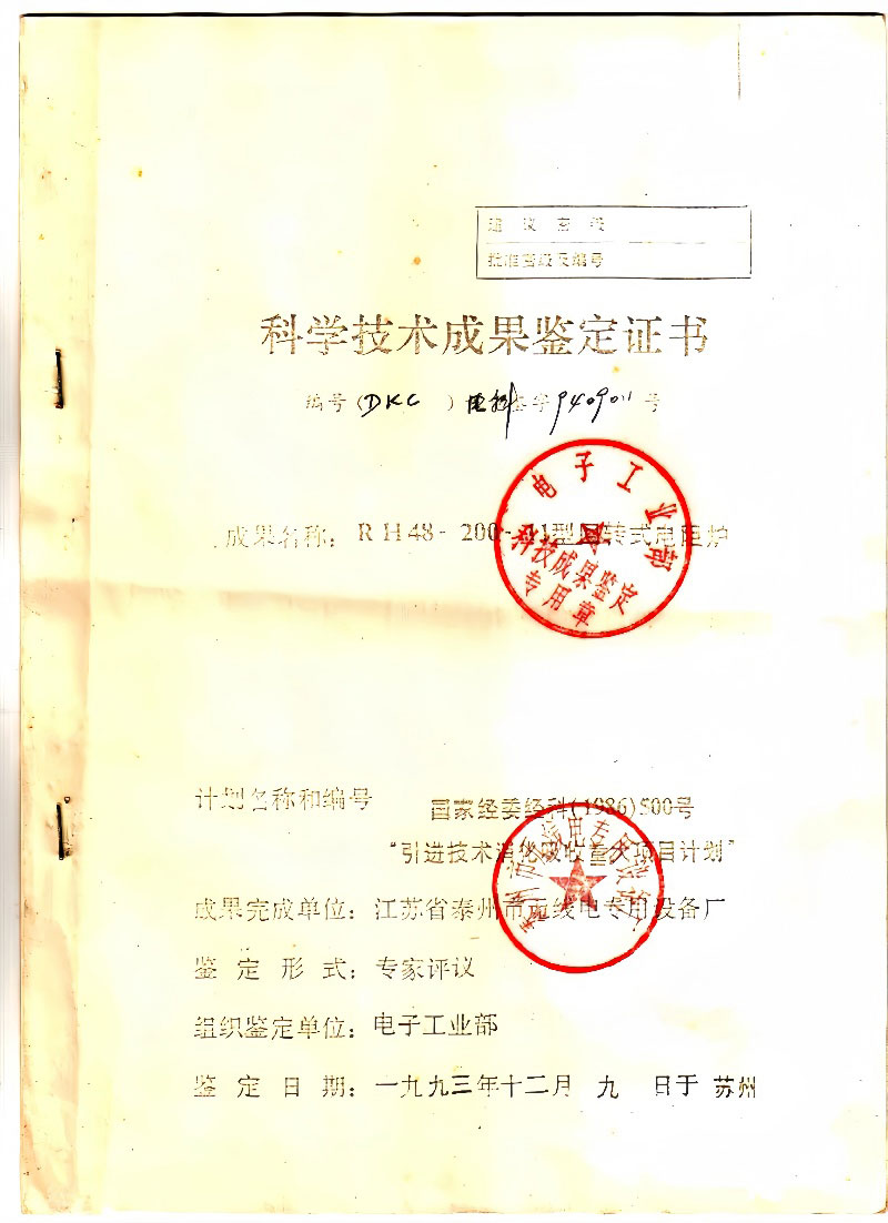 • 科技技術(shù)成果鑒定證書(shū)